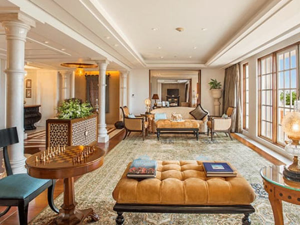 Mughal inspired designs, hand crafted furnishings and our warm hospitality. These elegant rooms offer views of the Taj Mahal and feature a king sized or twin beds, a marble ensuite bathroom and furnishings specially crafted for Oberoi; a cotton silk armchair, hand knotted rugs and a walk in wardrobe. All complemented by a personal butler, at your service.