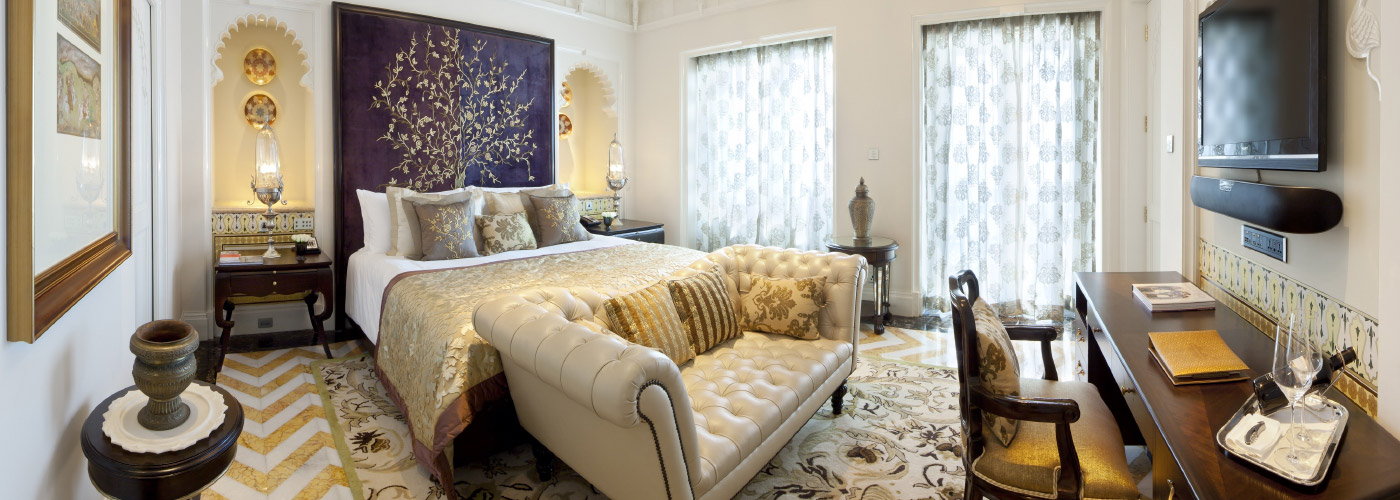 These picturesque thematic suites have a spacious living area and bedroom. These include access to the Palace Lounge, Taj Club facilities, butler service, two-way airport transfers in a luxury car. These suites also include high tea from 15.30 to 17.30 hours at a pre-designated dining venue.