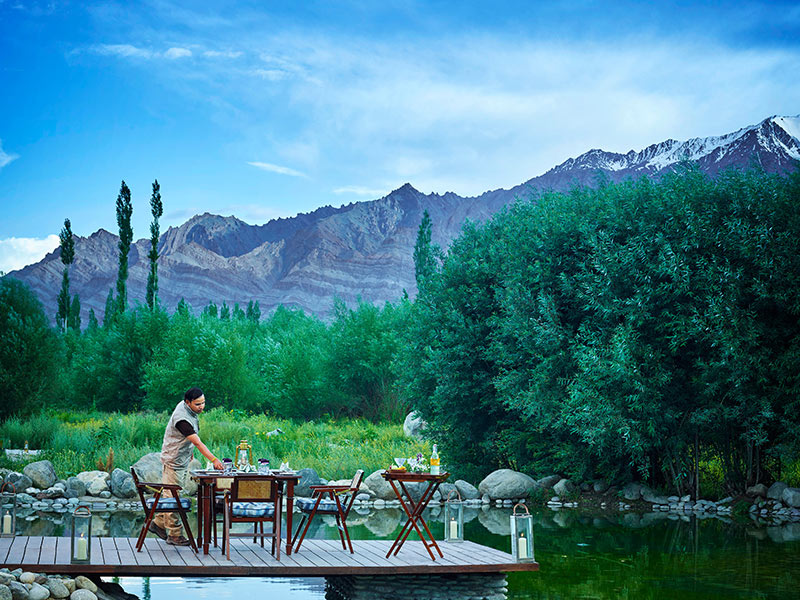 Cradled by jagged mountains on the road north from the Leh Valley, meet two ancient rivers - the Nubra and the Shyok. They form the enchanting Nubra Valley - an oasis of legendary merchants, mercenaries and monks who crossed these high-altitude trans-Himalayan sand dunes in search of gold, glory and God. Continuing the expedition through dramatic landscapes of enormous glaciated peaks and arid pathways, reach the tranquil yet thriving village of Diskit. Untouched by the mainstream, the village has preserved its sanctity beautifully, despite being the commercial hub of Nubra.
