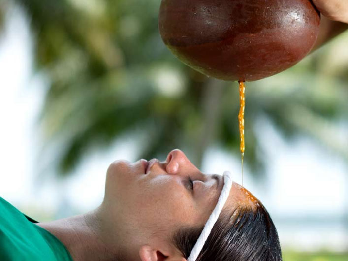 In this process, some herbal oils, medicated milk, medicated butter milk etc., are poured on the forehead in a special method for about 45 minutes in a day for a period of 7 to 21 days. This treatment is mainly for Insomnia, Vatha predominated diseases, mental tension and certain skin diseases.