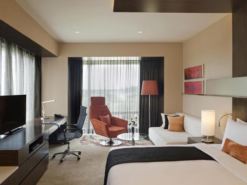 Surrounded by lush, manicured grounds, yet across from Sri Guru Ram Dass Jee International Airport (ATQ), the Radisson Blu Hotel Amritsar provides guests with a convenient oasis outside the city bustle. With tranquil views of the hotel’s beautiful grounds, each of our 186 rooms and suites makes it easy to unwind on your Amritsar vacation. Amenities like free Wi-Fi, individual climate control, and fully stocked minibars invite you to relax. For club lounge access and airport transportation (fee applies), upgrade to a spacious suite.